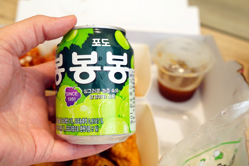 ▼白葡萄汁是韓國進口飲品,裡頭還喝得到葡萄顆粒,是小口愛指定要喝的飲料(笑)!