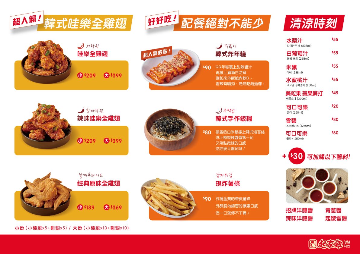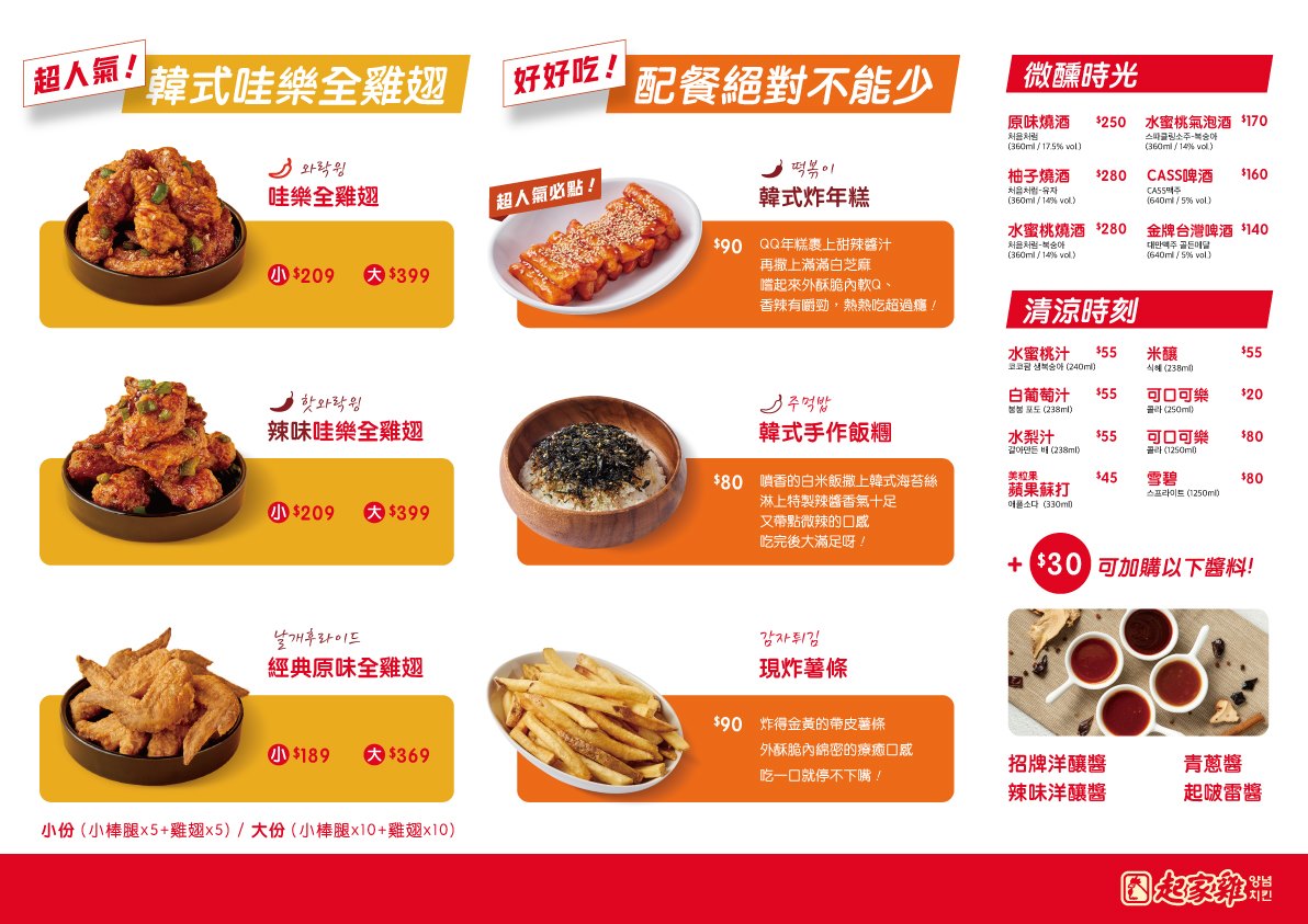 韓式炸雞又蒐集到一間~~我們終於吃到「起家雞」啦!之前吃過bbq炸雞、NENE炸雞、釜山崔炸雞,每家都有自己的特色,這次吃到的「起家雞」也是原汁原味的韓國炸雞,目前大部份都是外帶外送專門店,剛好疫情期間也比較適合;因為都是現點現炸,建議大家可以先網路訂餐,再選擇要自取或外送,消費滿599元即可免費送到家還真不錯(未滿599元外送費50元)~~我們點的是半半頂級洋釀,份量還不少,一次就能吃到原味及招牌的頂級洋釀,兩種口味都不錯吃,想要試點其他口味的朋友也可以單點醬料來搭配享用,附上醃蘿蔔清爽又解膩,現在免出國、在家就能品嘗到道地韓式炸雞真是過癮啊!