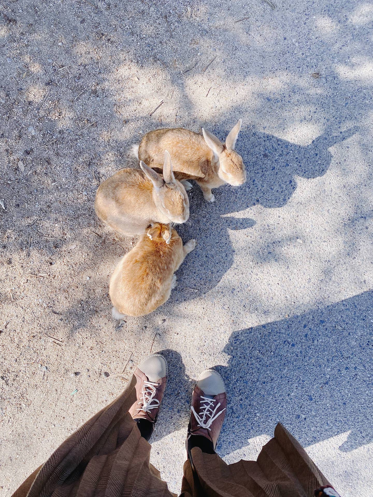 我們從11點逛到4點,走走停停地環島了一圈~這次雖然我們忘記買飼料,所以沒有像網路上所說的那樣被大量兔兔包圍,但還是很幸運地遇到幾隻天使兔願意給身無分文的我們摸兩把,真是太感動!離島前再偷摸一下屁屁!謝謝兔兔們的招待(滿足)