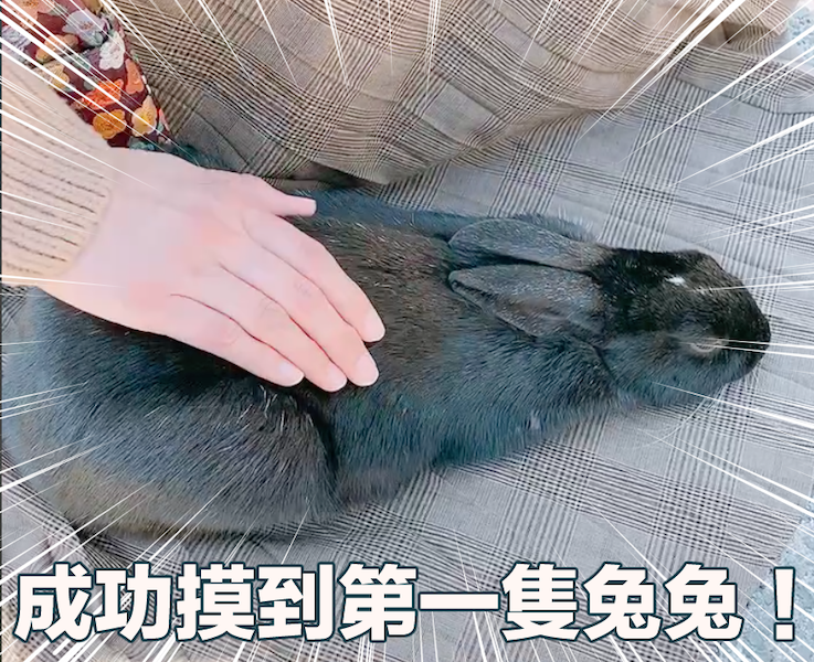 這隻兔兔還是從大老遠跑來,被擋在鐵欄裡,還想硬鑽出來迎接我們⋯⋯