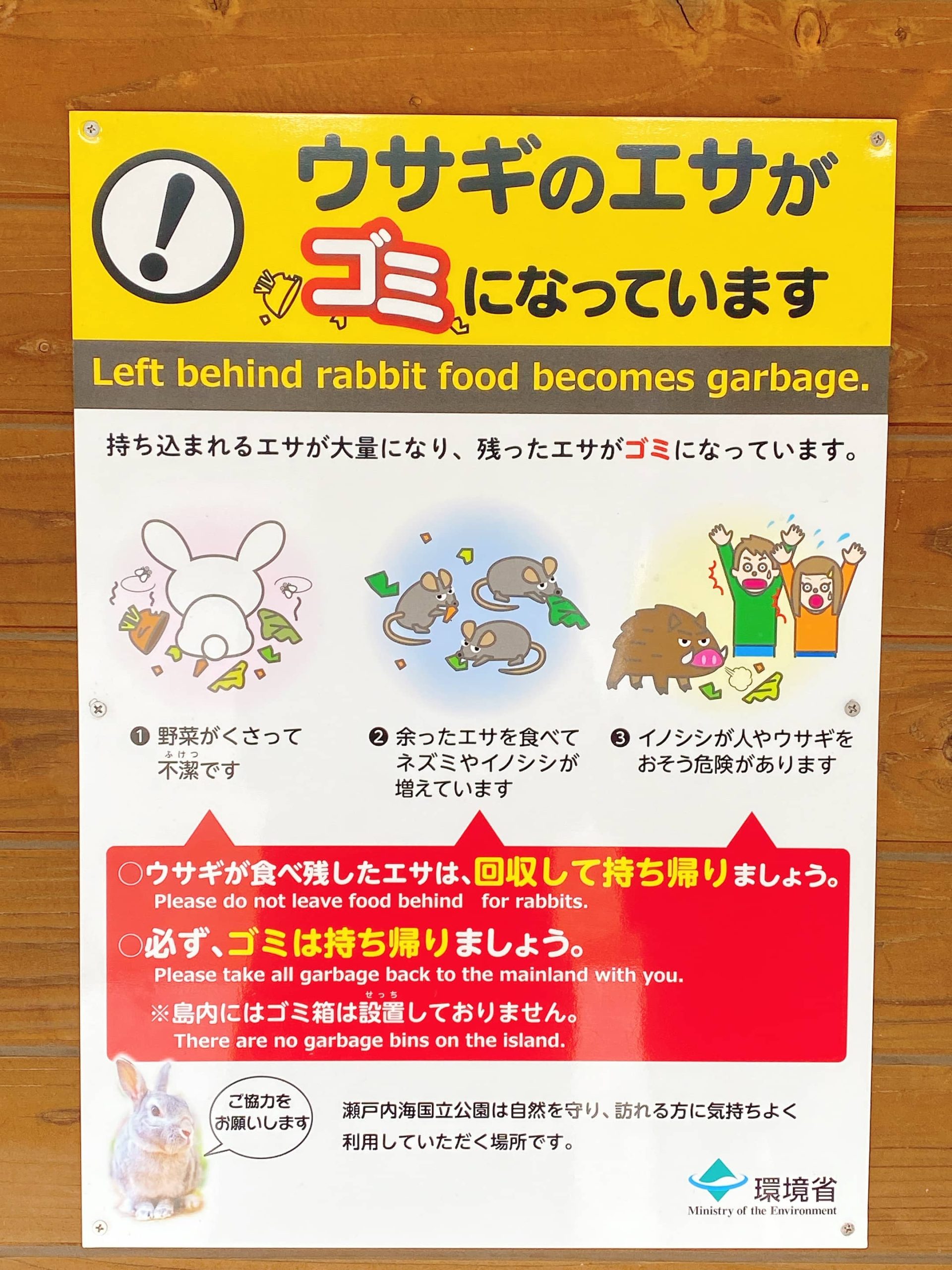 雖然撿到菜是很開心啦,不過其實島上有告示提醒:「兔子吃的剩菜會變成垃圾」,除了污染島上環境以外,還會助長老鼠和野豬。所以帶生菜來的人,記得盯著兔兔們把菜吃完再離開喔!