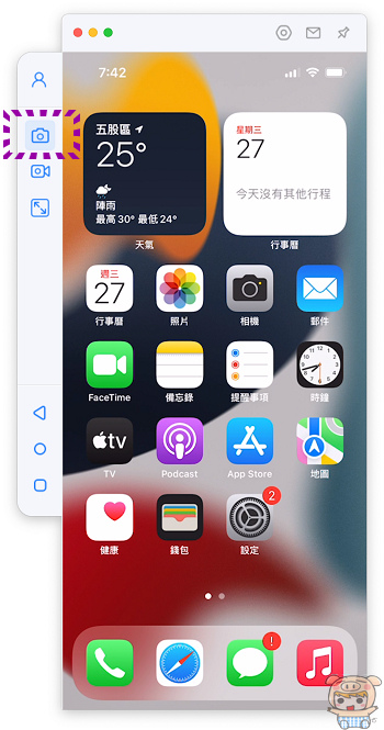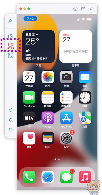 iMyFone MirrorTo 提供了螢幕截圖,與畫面錄影的功能,只要按一鍵就搞定啦,也就是說,我們玩遊戲時,可以把畫面錄影下來,非常的方便,而在畫面的左下方,提供了返回鍵,HOME鍵,切換程式鍵,讓你更方便在電腦上操作iPhone。