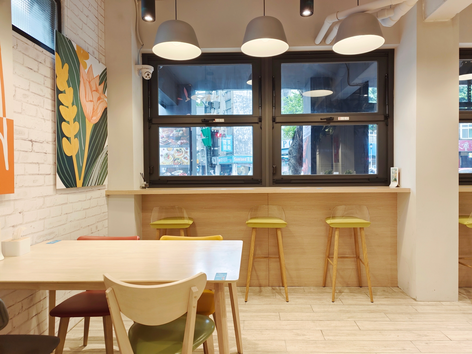點餐機、方桌、單人高腳座位都有設置,以及提供 Wi-Fi。因為環境太舒服了,陸續有上班族前來點餐後,拿出筆電工作或聚一起討論公事,如無特別標示還以為這是哪間咖啡店。
