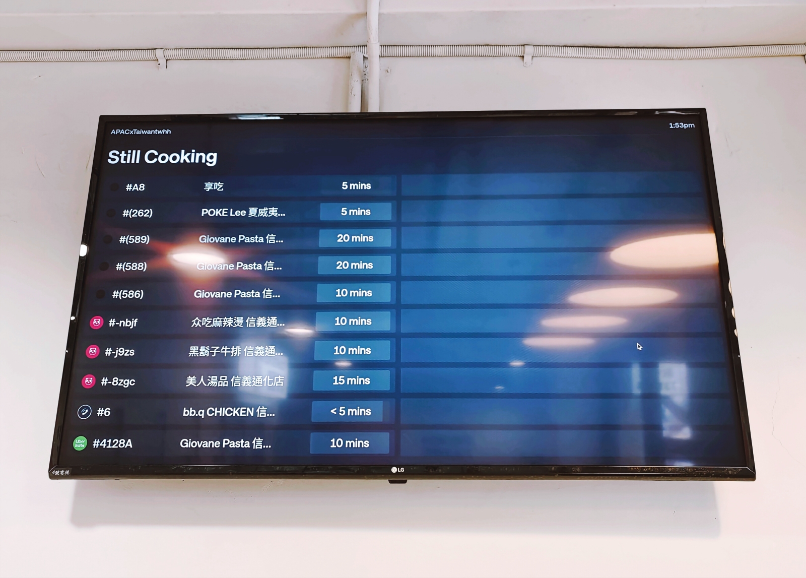 即使未能馬上取得餐點,也能從螢幕上得知餐點製作所需時間。