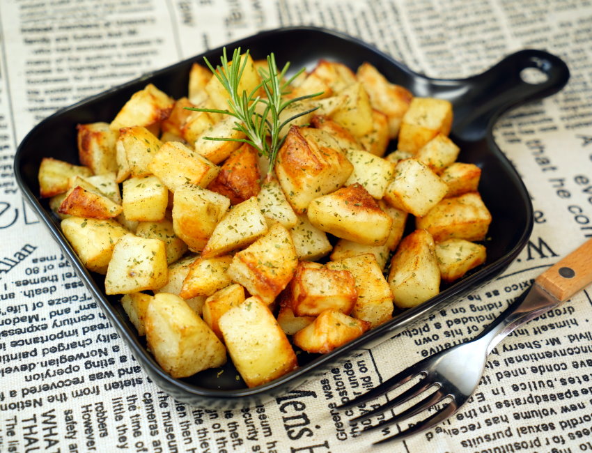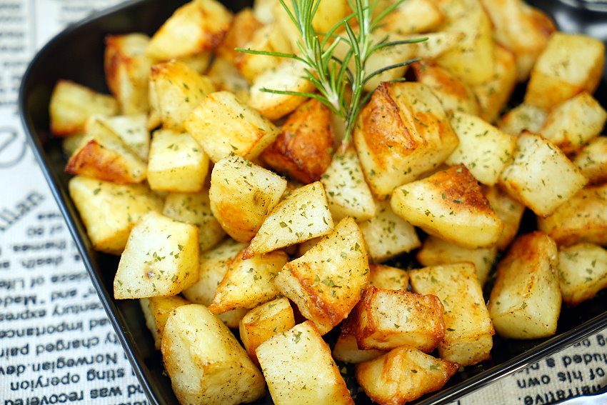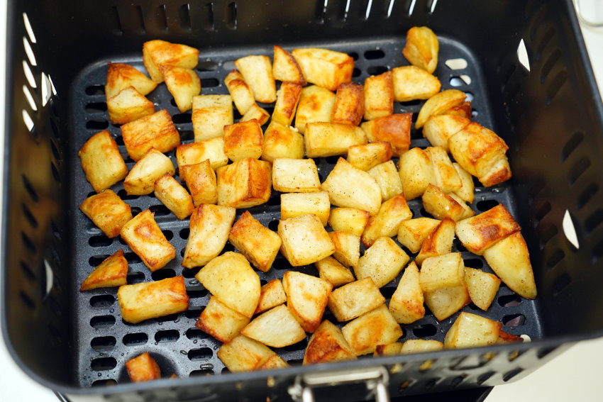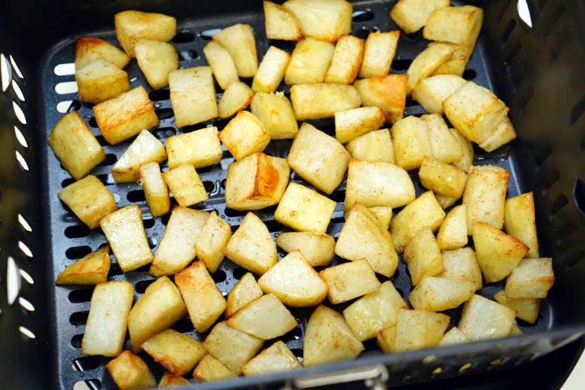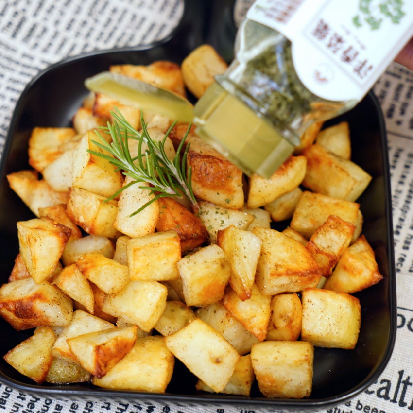 3.將調味過的馬鈴薯塊放入氣炸烤箱,用180度氣炸30分鐘即可(使用氣炸鍋可縮短為25分鐘)。