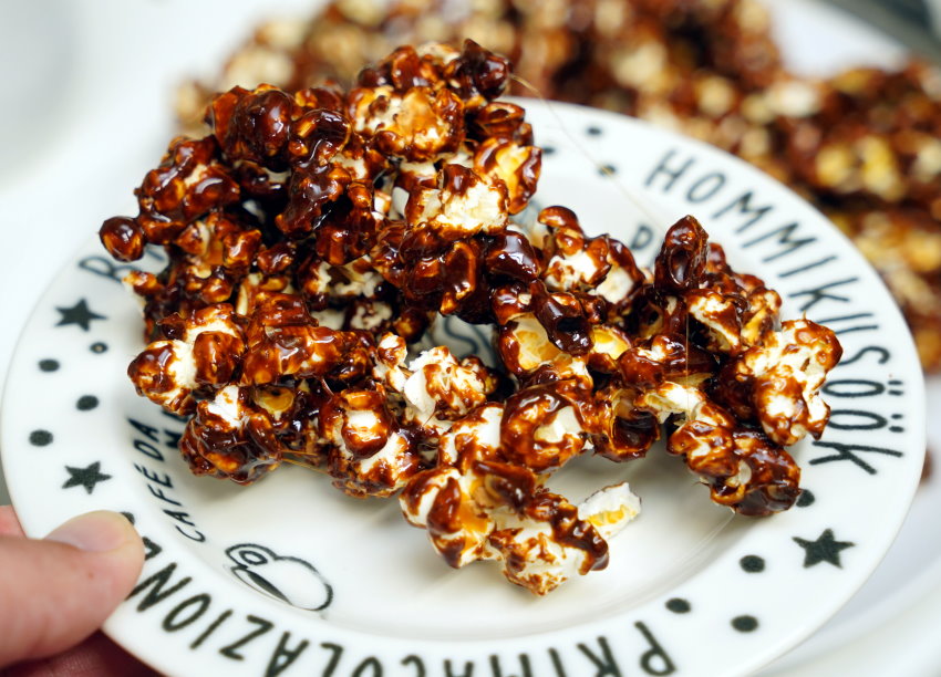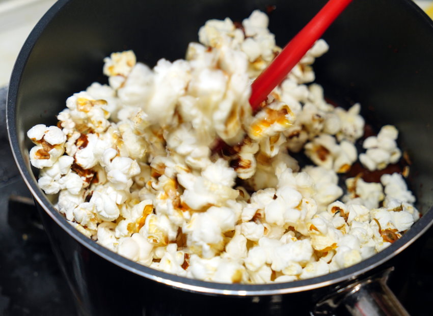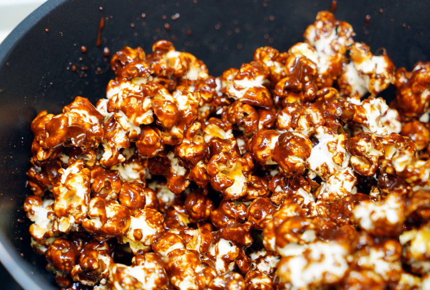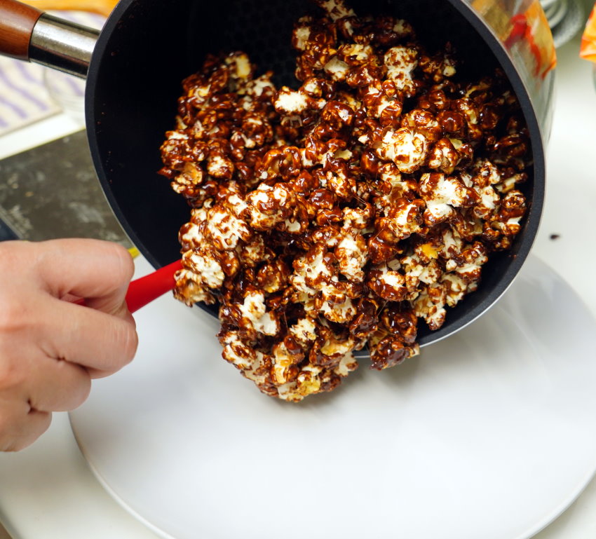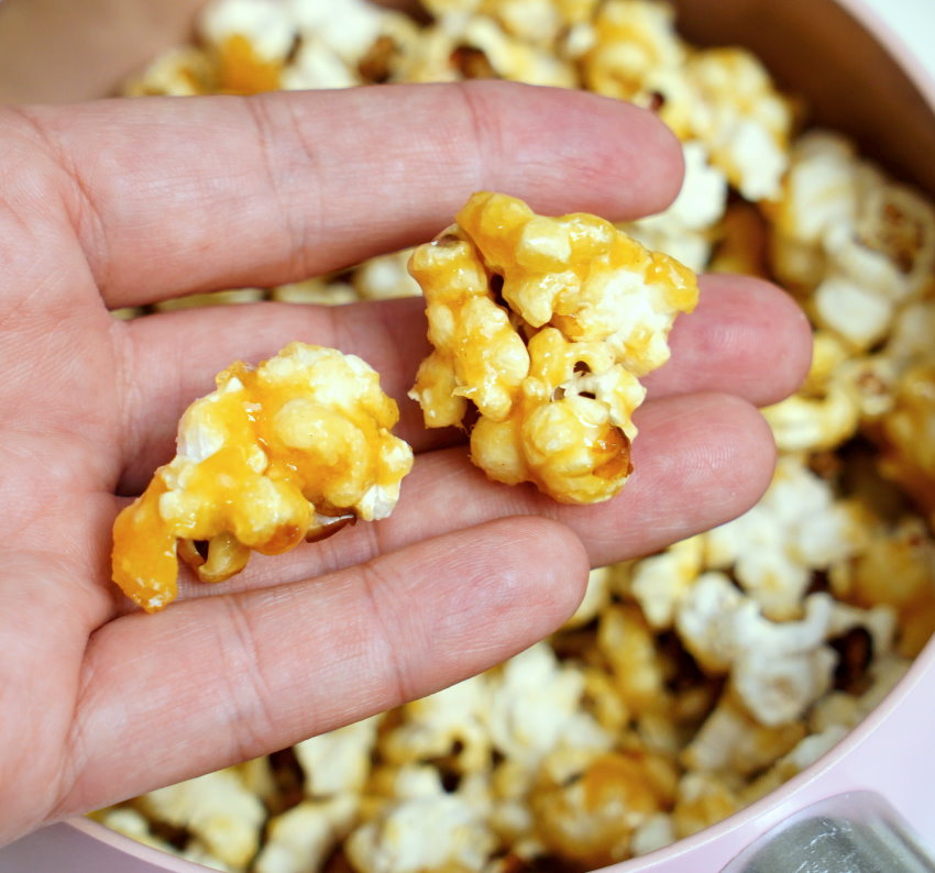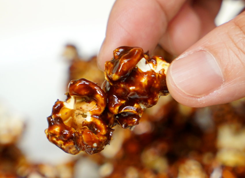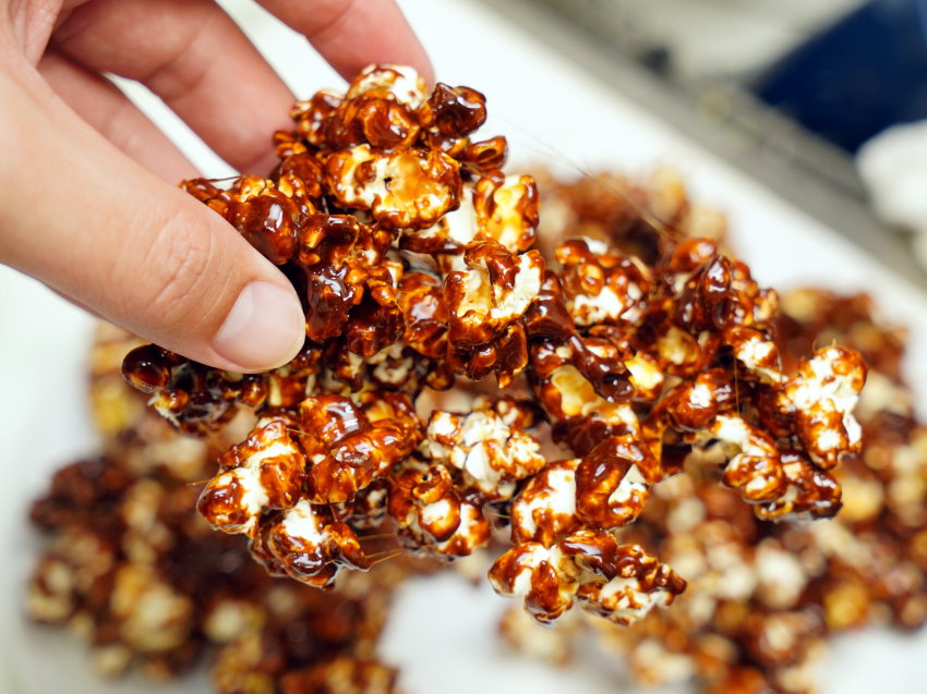 ▼每一顆爆米花都均勻裹上糖漿,等到冷卻凝固後就能吃到爽脆的口感!