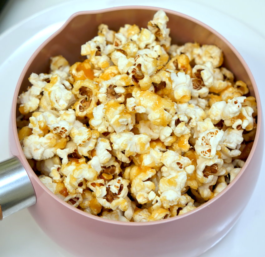 電影院常見的焦糖爆米花在家也能輕鬆做!這次大口要分享的焦糖爆米花做法有兩種,一種是使用平底鍋,一種是使用氣炸鍋(或氣炸烤箱),平底鍋比較快速,氣炸烤箱是方便又不用顧火,也不用擔心爆米花會噴濺出來,兩種做法都不難~~煮糖漿也很簡單,如果喜歡焦糖口味的朋友,只要加入無鹽奶油、砂糖下去熬煮,喜歡黑糖口味的朋友再額外加入黑糖一起煮,再將爆米花放進去糖漿裡頭攪拌均勻,鋪平放涼後就完成啦~~包準大小朋友搶著吃,在家防疫也能吃到電影院的爆米花囉!