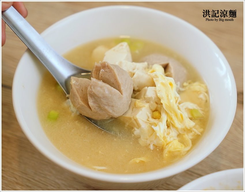 ▼味噌綜合湯,裡頭有蛋花、豆腐、貢丸及蔥花提味,一整個料多實在!
