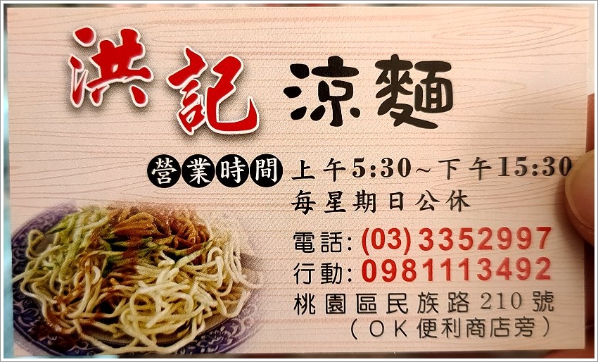 ▼「洪記涼麵」就位於桃園區民族路上、靠近和平路的位置,紅底白字的扛棒看起來頗為顯眼好找!
