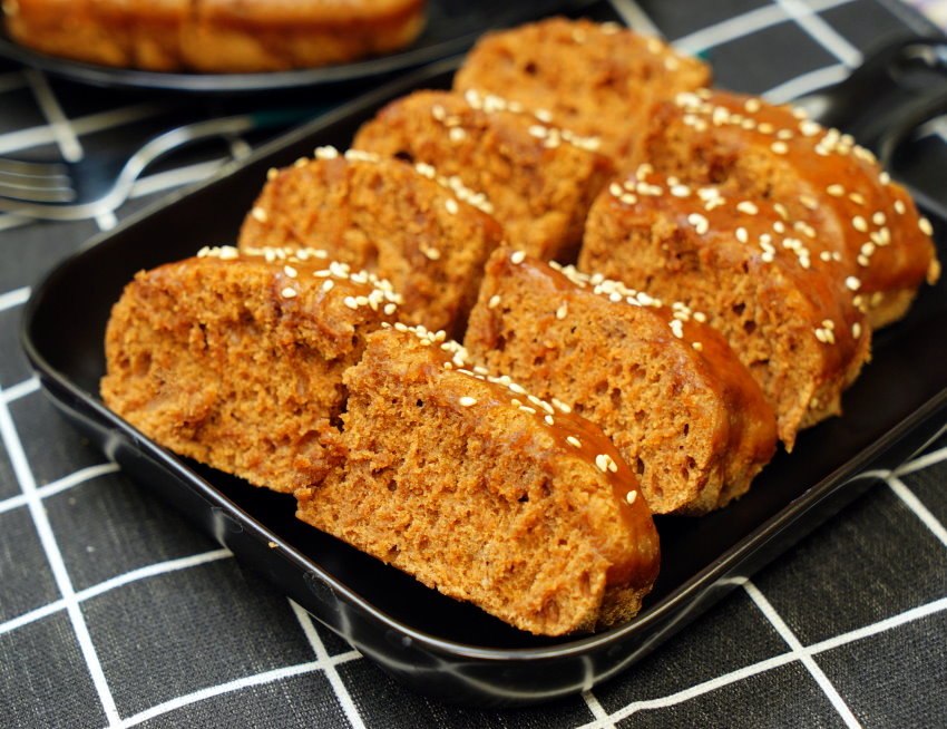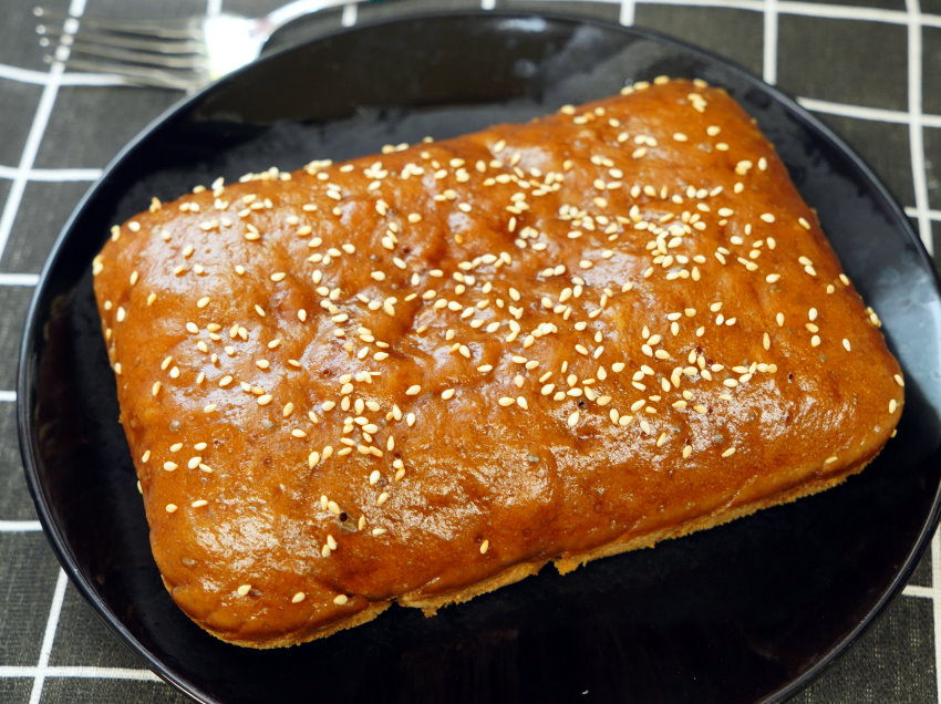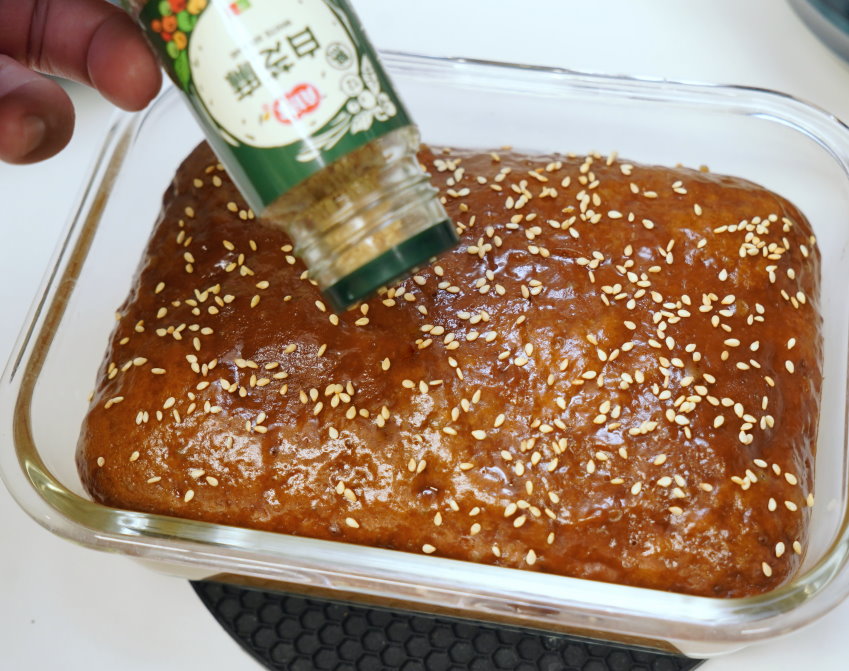 4.出爐後拿出來撒上白芝麻,再放進去悶個1分鐘即可切片享用。