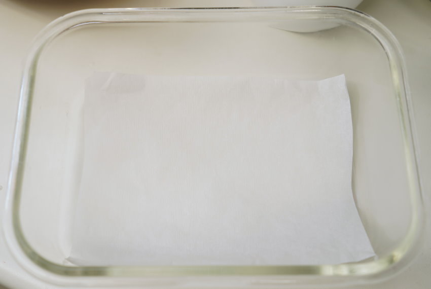 ▼另外準備一個保鮮盒,底部放一張烘焙紙避免沾黏,邊邊想要放烘焙紙也沒問題!