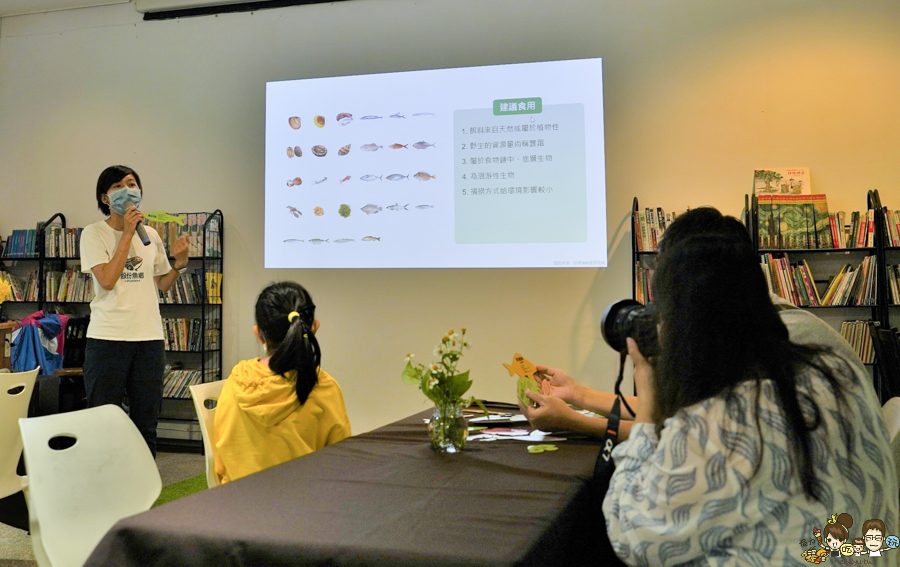 也順便的學習到剛剛玩樂互動所介紹的海鮮,讓孩子快速吸收、了解那些是綠色建議食用的海鮮