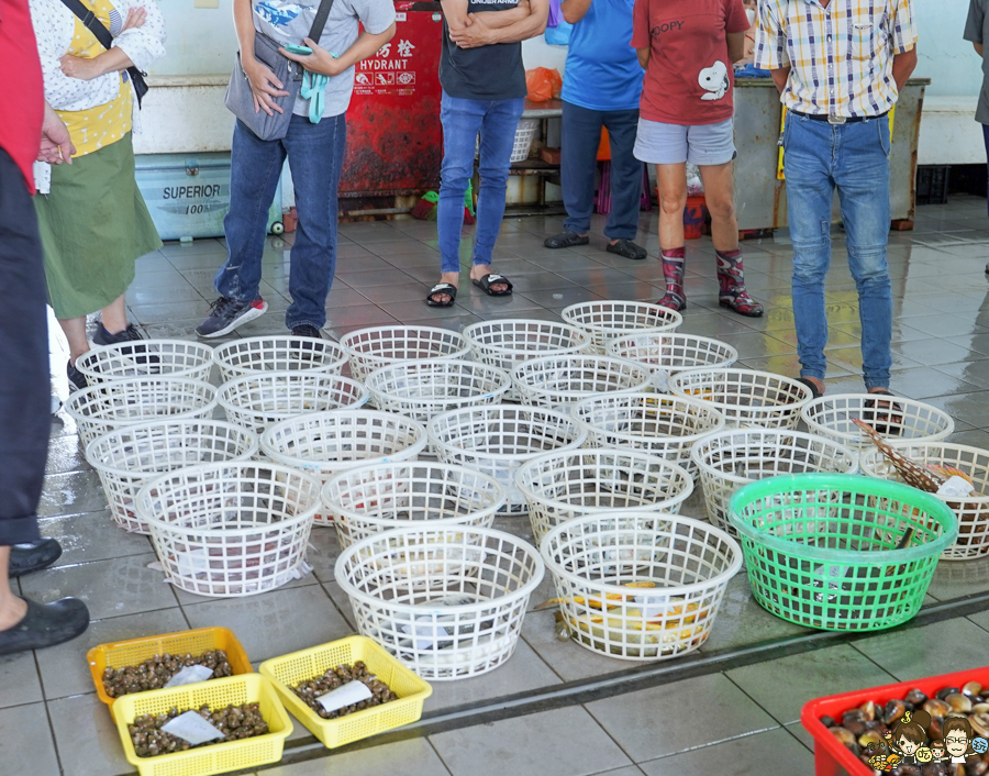 現場也可以注意看,白色籃子的海鮮都是在地海鮮,黃色籃子是外地海鮮