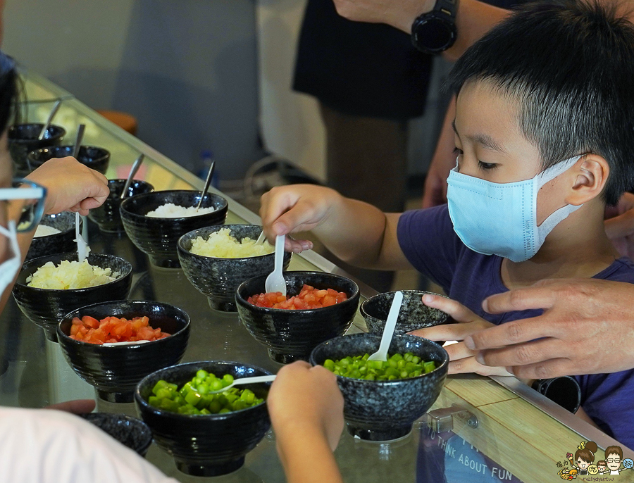 互動玩樂過程中認識很多海鮮、魚,第一天享受的鮮味午餐是 地利小食的呂秋絹主廚所研發配置