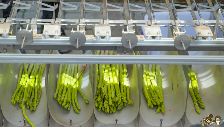 蘆筍分裝機械上有砝碼,會依據蘆筍不同的重量繼續做分類