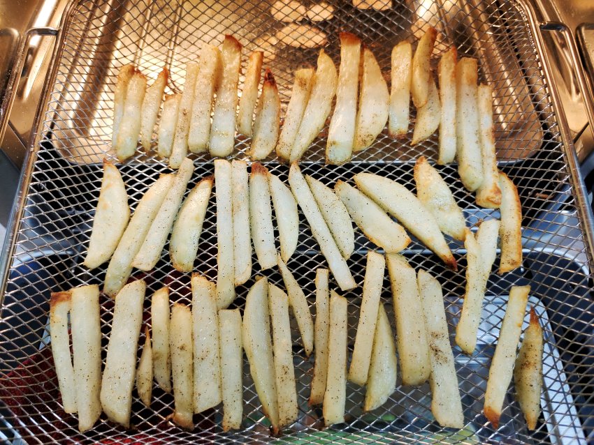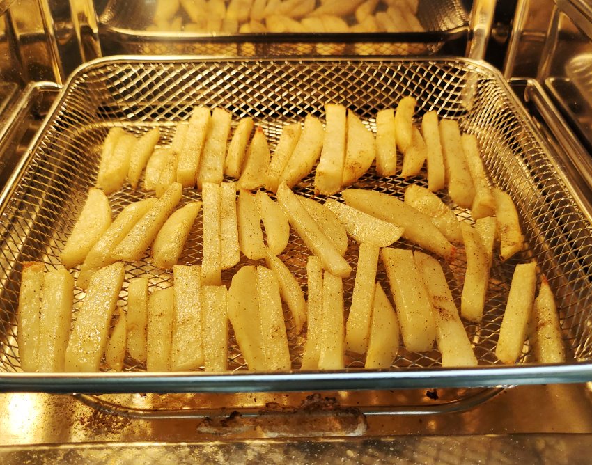 ▼第一次氣炸出爐大概是這樣,我們又多加了5分鐘讓長薯條變得更酥脆一些!