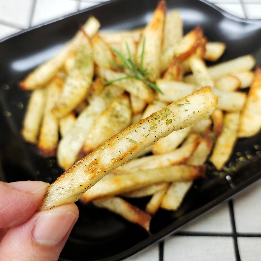 ▼採用氣炸烤箱做出來的薯條吃起來酥脆又不油膩,簡單調味健康好吃,微微鹹香又涮嘴的滋味,大人小孩都喜歡~~沒多久就被秒殺啦!