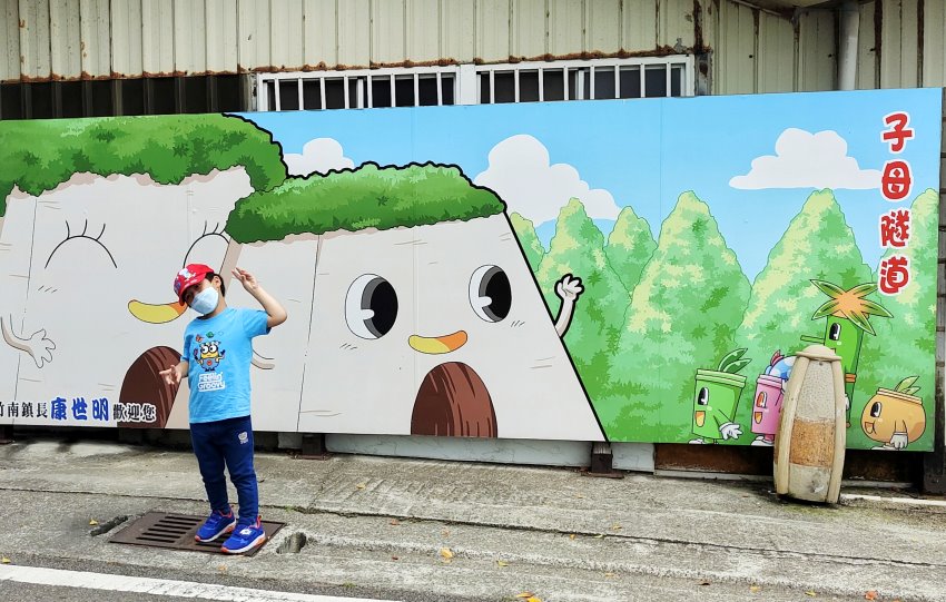 ▼停車場對面還有一個可愛的子母隧道壁畫,小口弟立刻說要來拍張照!