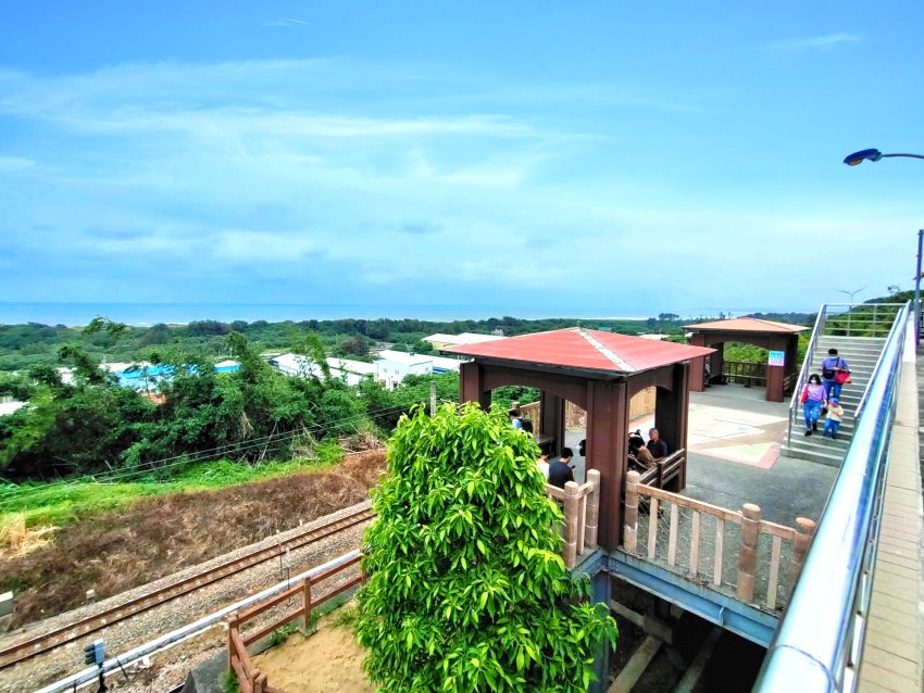 ▼上頭是一個大大的木製平台,往下俯瞰就是鐵道與海岸,天氣好的話應該會看到不錯的風景!