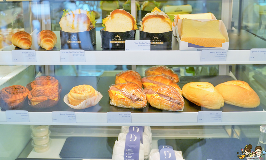 檯面上滿滿的烘焙美食,從甜點蛋糕、貝果、吐司、可頌等等美食