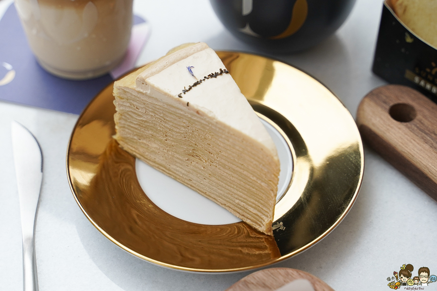 千層蛋糕帶濕潤度,每一層都夾帶伯爵奶油