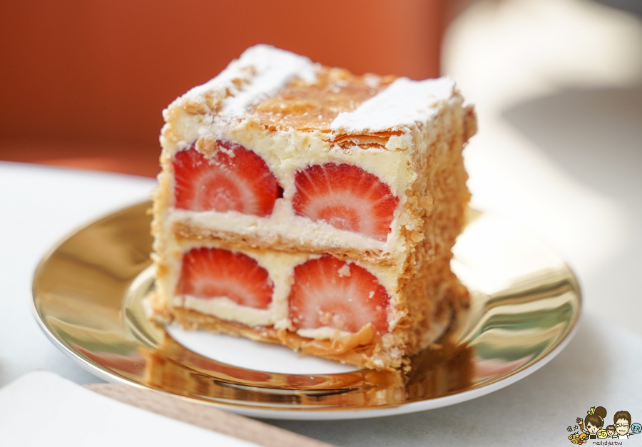 招牌人氣推薦草莓拿破崙,層次堆疊、滿滿草莓用料超好吃