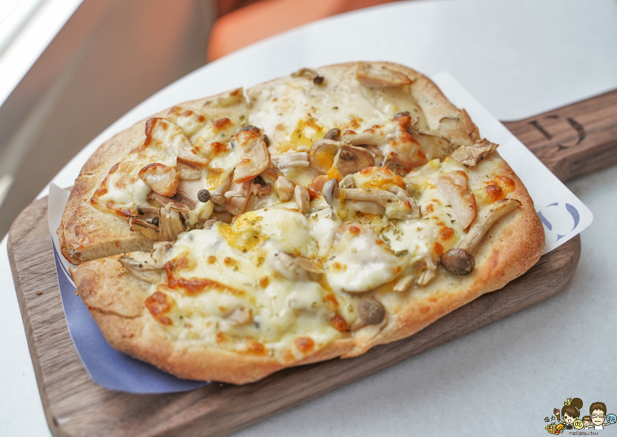 起司滿滿堆疊帶白醬滋潤披薩口感,超好吃~我愛這款 黑松露佐白醬煙燻比薩