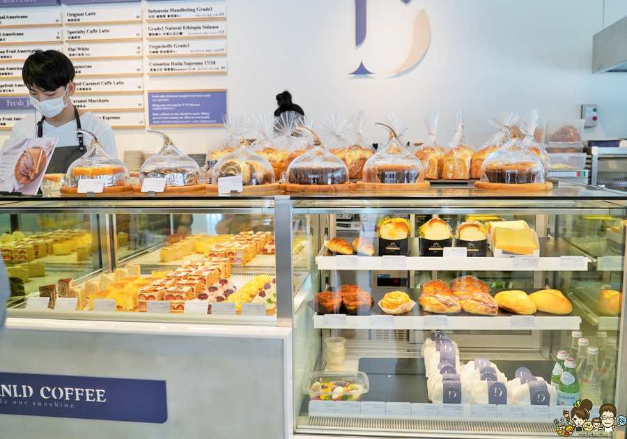 很多甜點、蛋糕,輕食三明治、沙拉、貝果等等