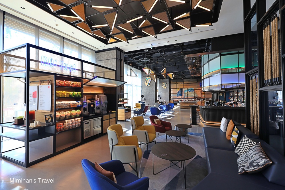 最近萬豪開的新飯店裝潢都蠻時尚年輕,台南安平雅樂軒酒店也是給我這樣的感覺,各種幾何圖形搭配鮮豔色彩相當活潑搶眼,還加入了帆船繩、虱目魚、油燈等海洋元素,說是網美飯店也不誇張。而服務人員態度也蠻好,入住流程順暢和對待上也感覺很輕鬆愉快。