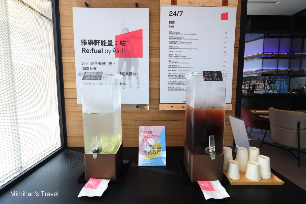 櫃檯對面的雅樂軒能量站可以買到餅乾、泡麵等零食,咖啡的話早上10點前是免費供應。