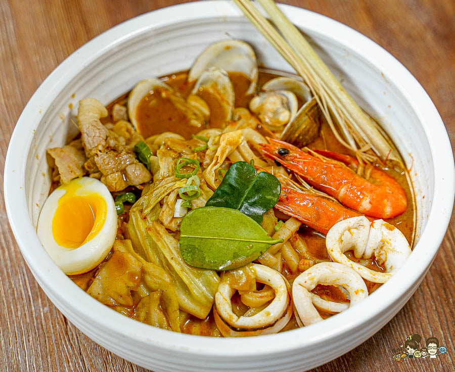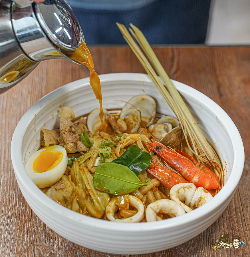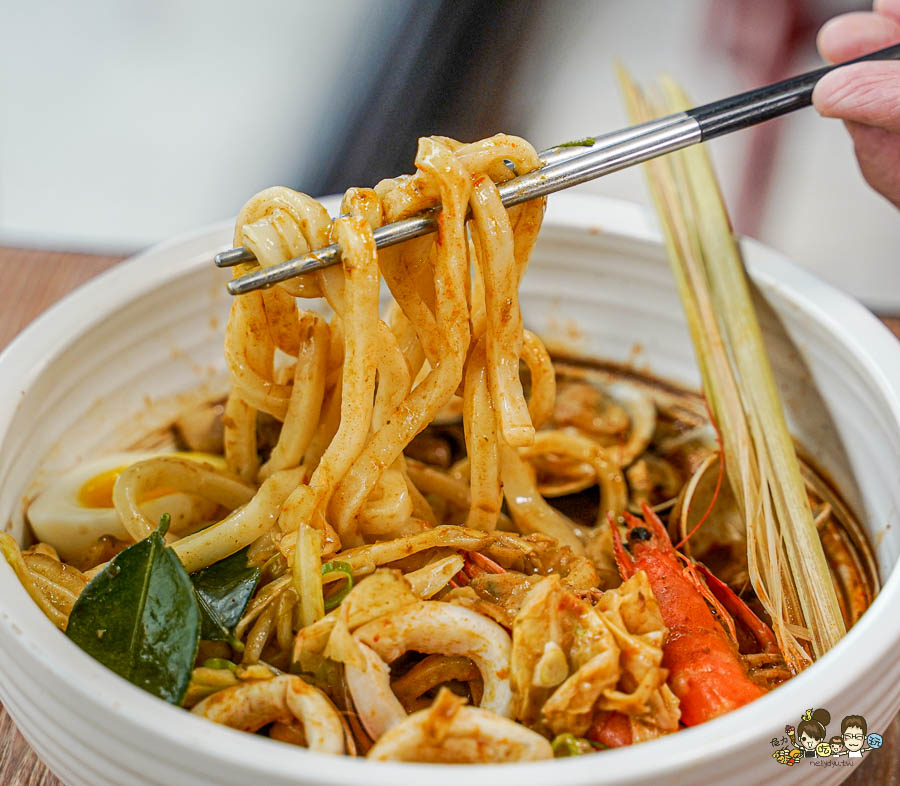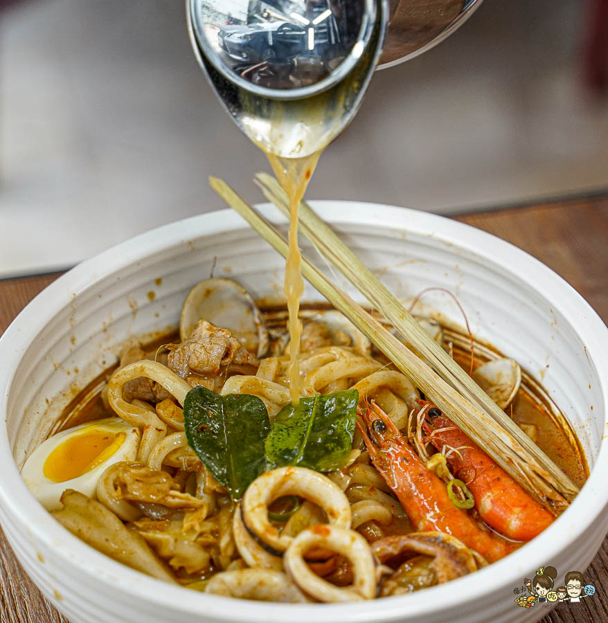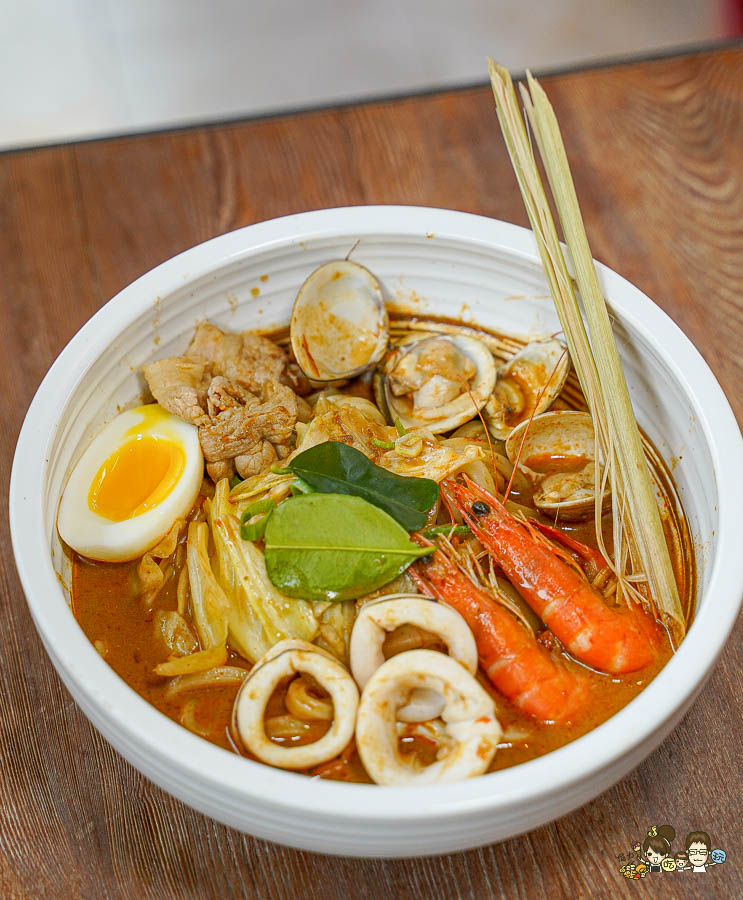 使用大量的獨門精選辛香料、海鮮,精燉熬煮出南洋風味的叻沙湯