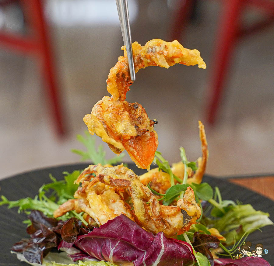 海味新鮮滋味軟殼蟹,炸物搭配沙拉可以緩解膩度