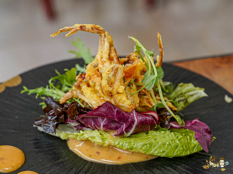 搭配主廚特製的辣味味噌醬,勾勒出軟殼蟹的鮮度