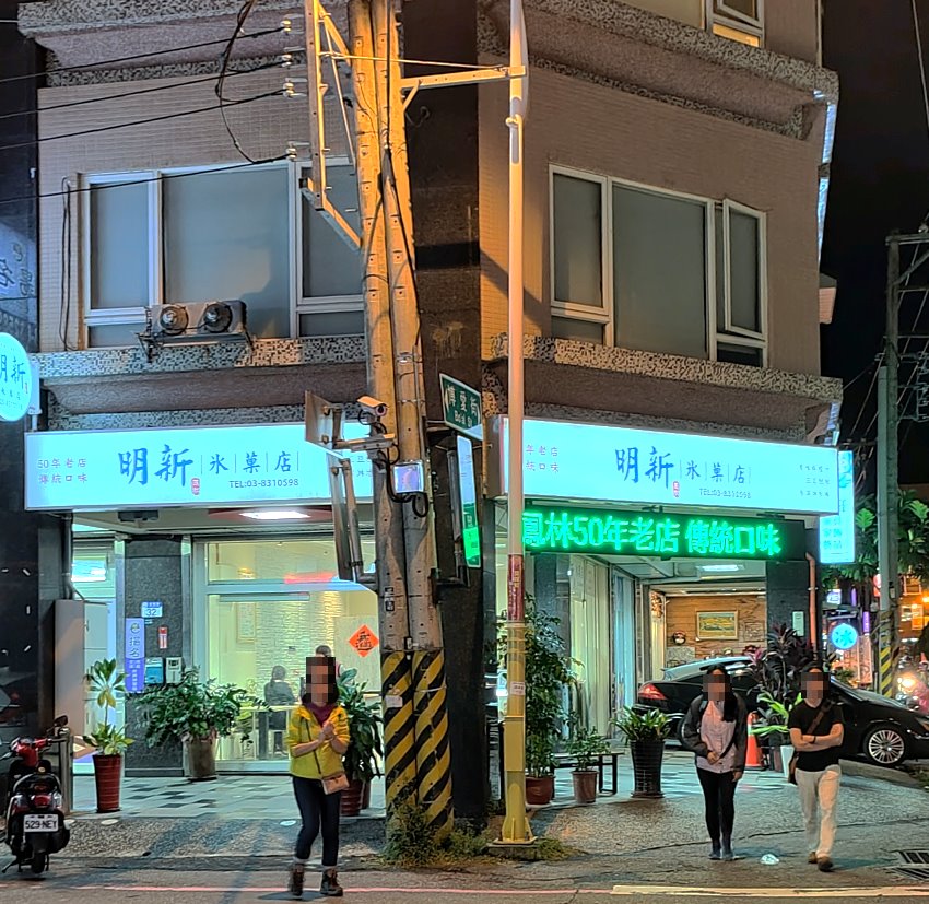 ▼「明新冰菓店」花蓮店就位於花蓮市民國路、博愛街交叉路口,簡約亮眼的招牌顯眼又好找!