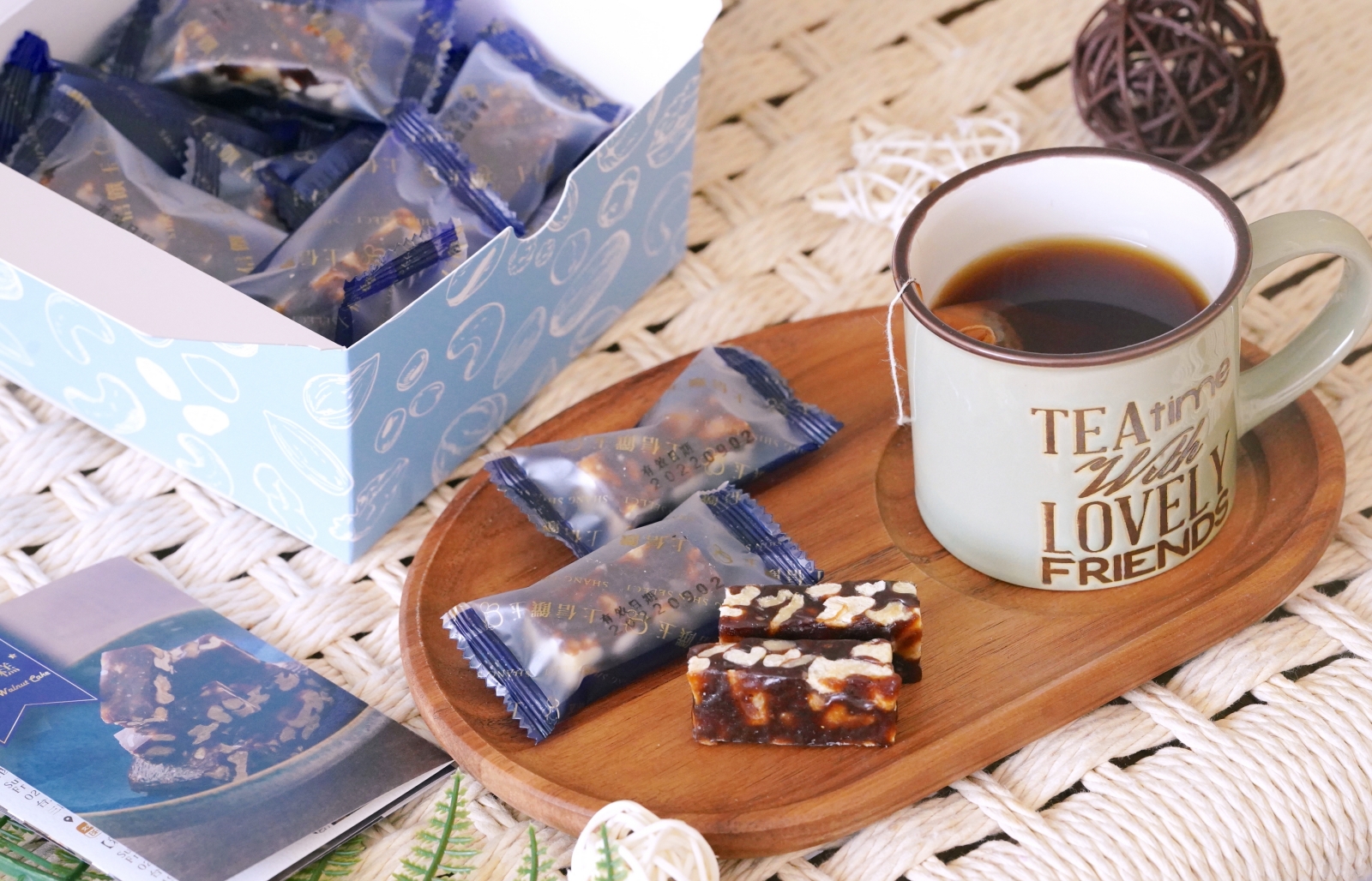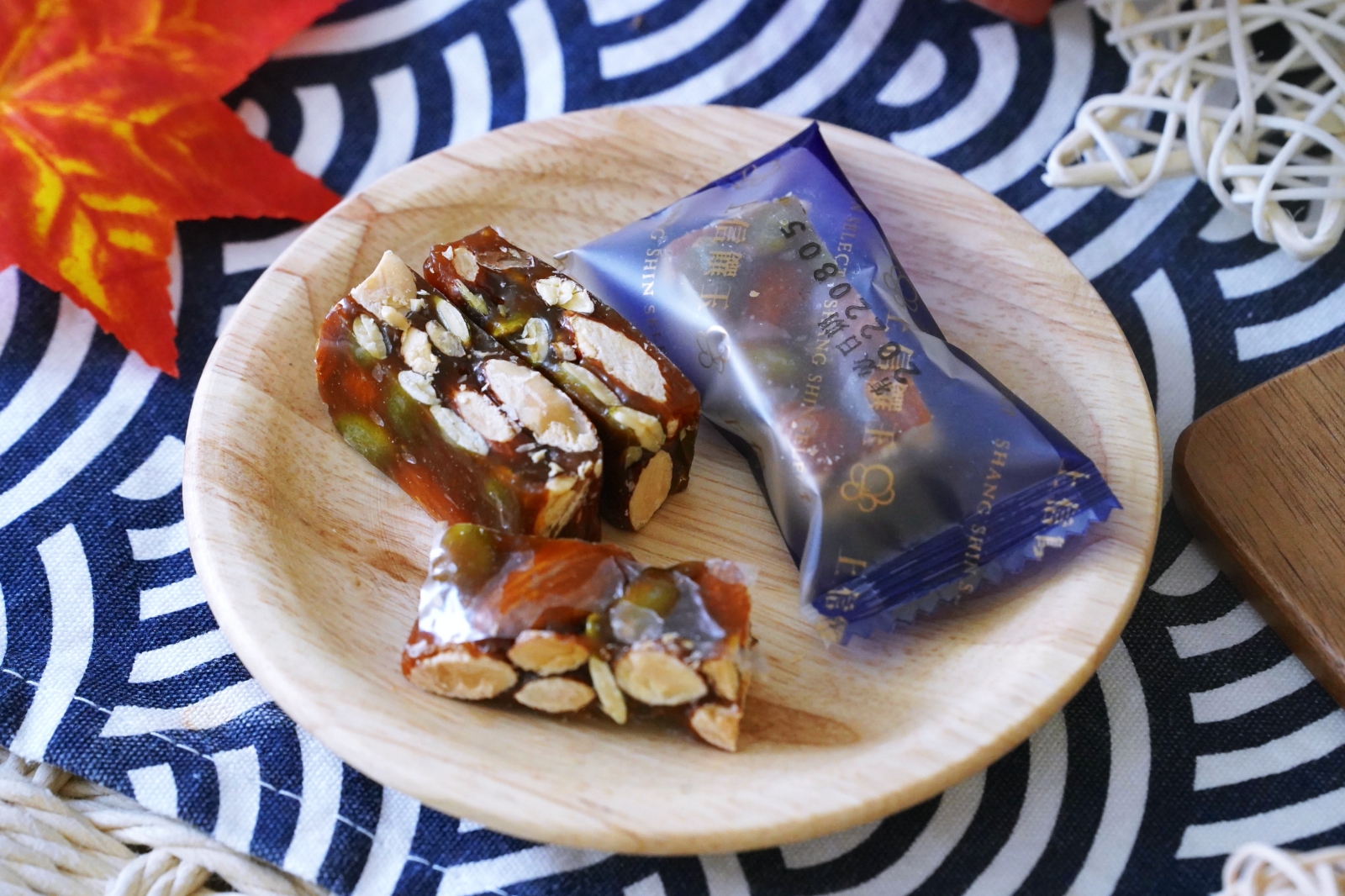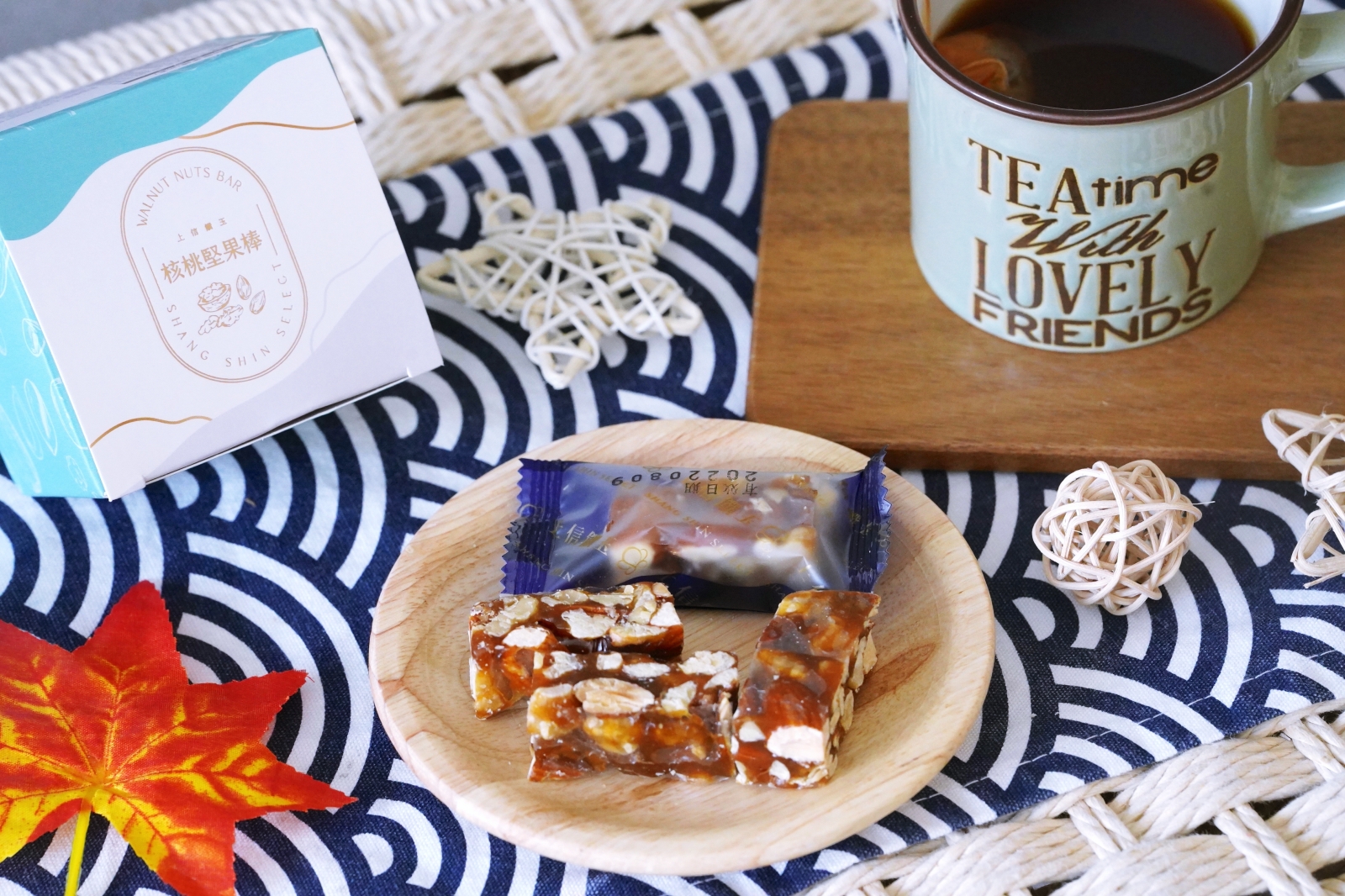 內容物:夏威夷潛艇 5 入、南棗核桃糕 5 入、核桃堅果棒 5 入、堅果棒 5 入、松子糕 5 入、太妃糖 5 入,都是相對迷你的包裝,適合嚐鮮。