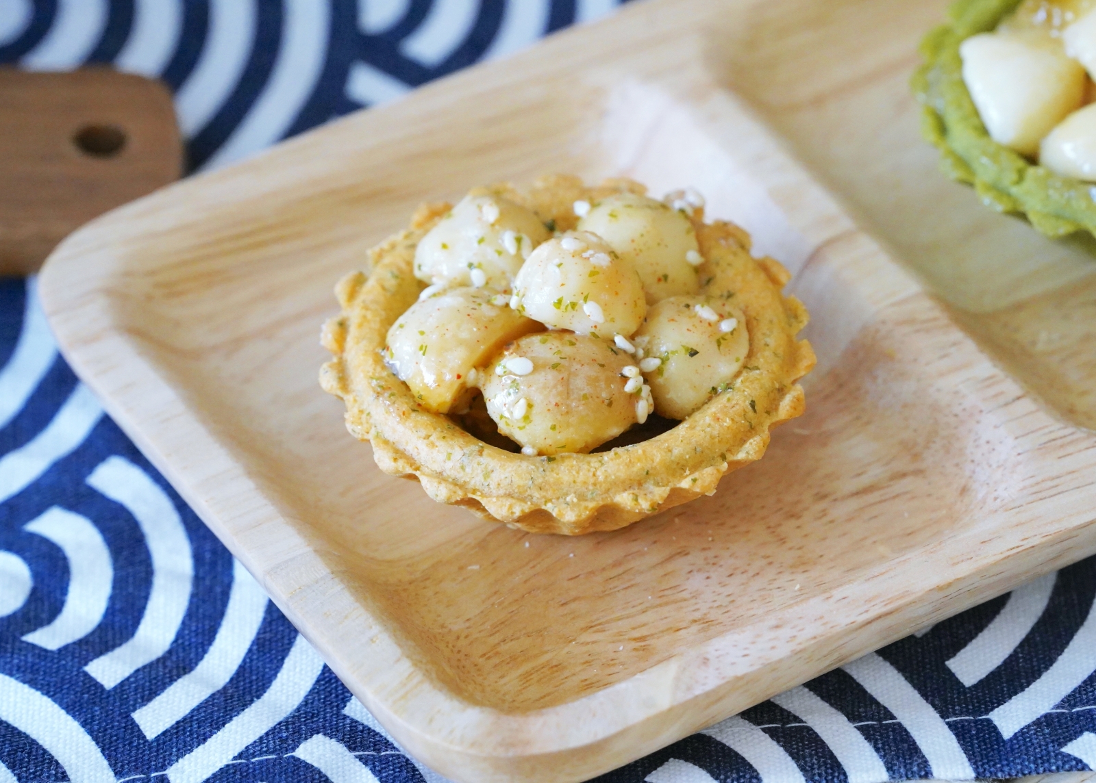 ▼椒香豆塔太好吃了!用純手工「辛福-五仁辣麻果油」製作,五仁果油是不含蔥蒜五辛的全素醬料,辣麻果油風味則是椒香麻辣為主的氣味,整顆椒香豆塔有辣椒、花椒香氣,搭配腰果、杏仁片、花生、葵瓜子、白芝麻等五穀堅果煮炒,塔皮部分,使用五仁辣麻果油特製塔皮,因此整顆堅果塔吃起來是鹹的, 是台味川式口味混搭,一吃就停不下來!
