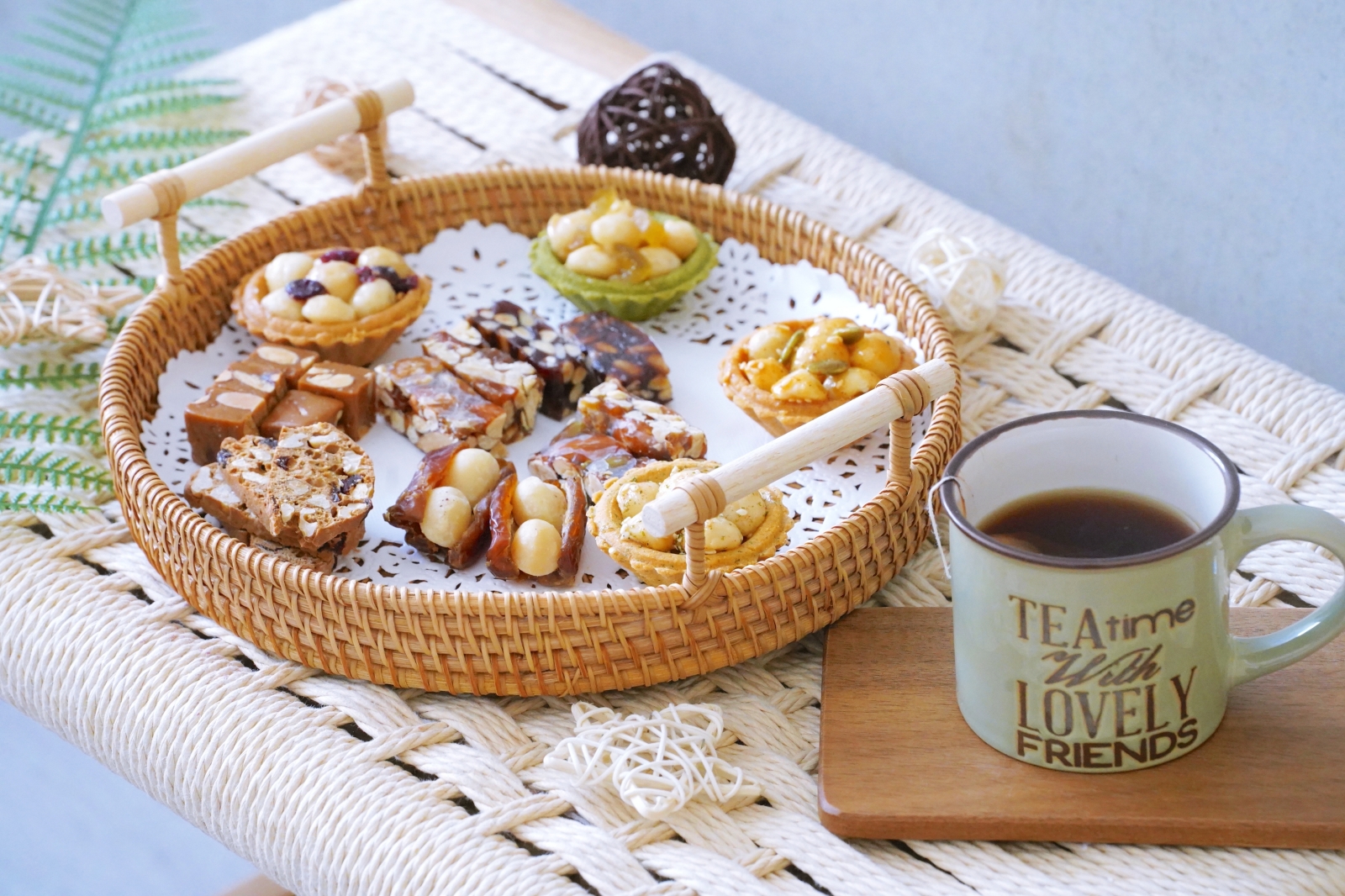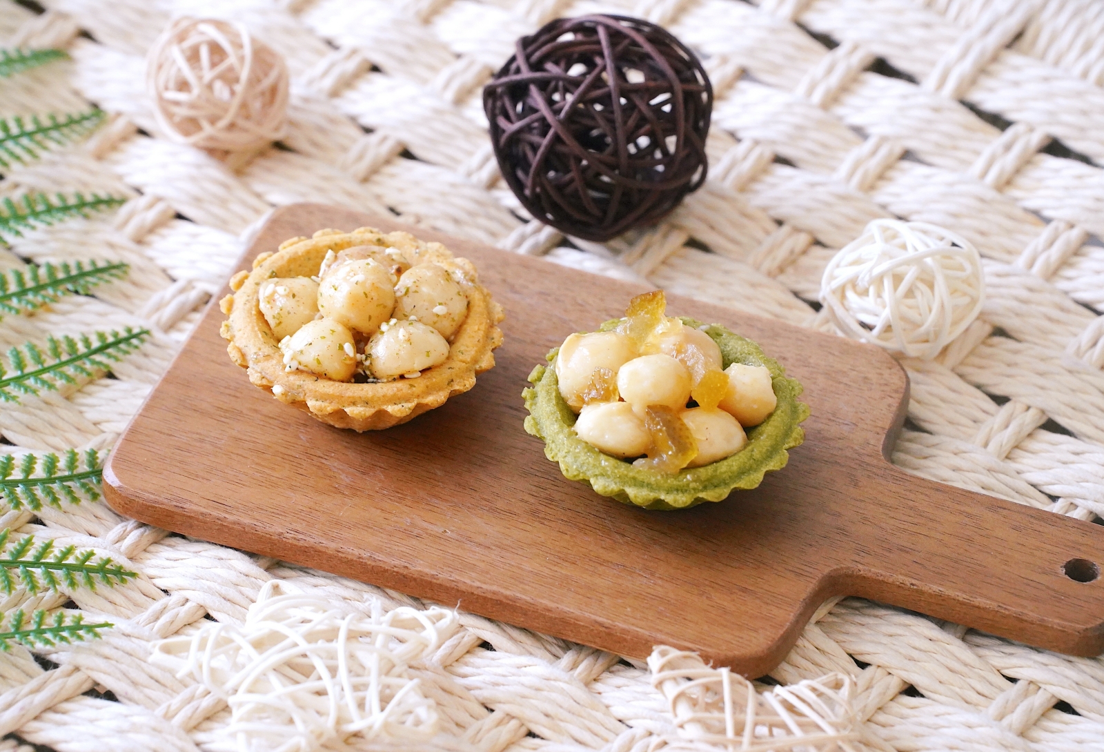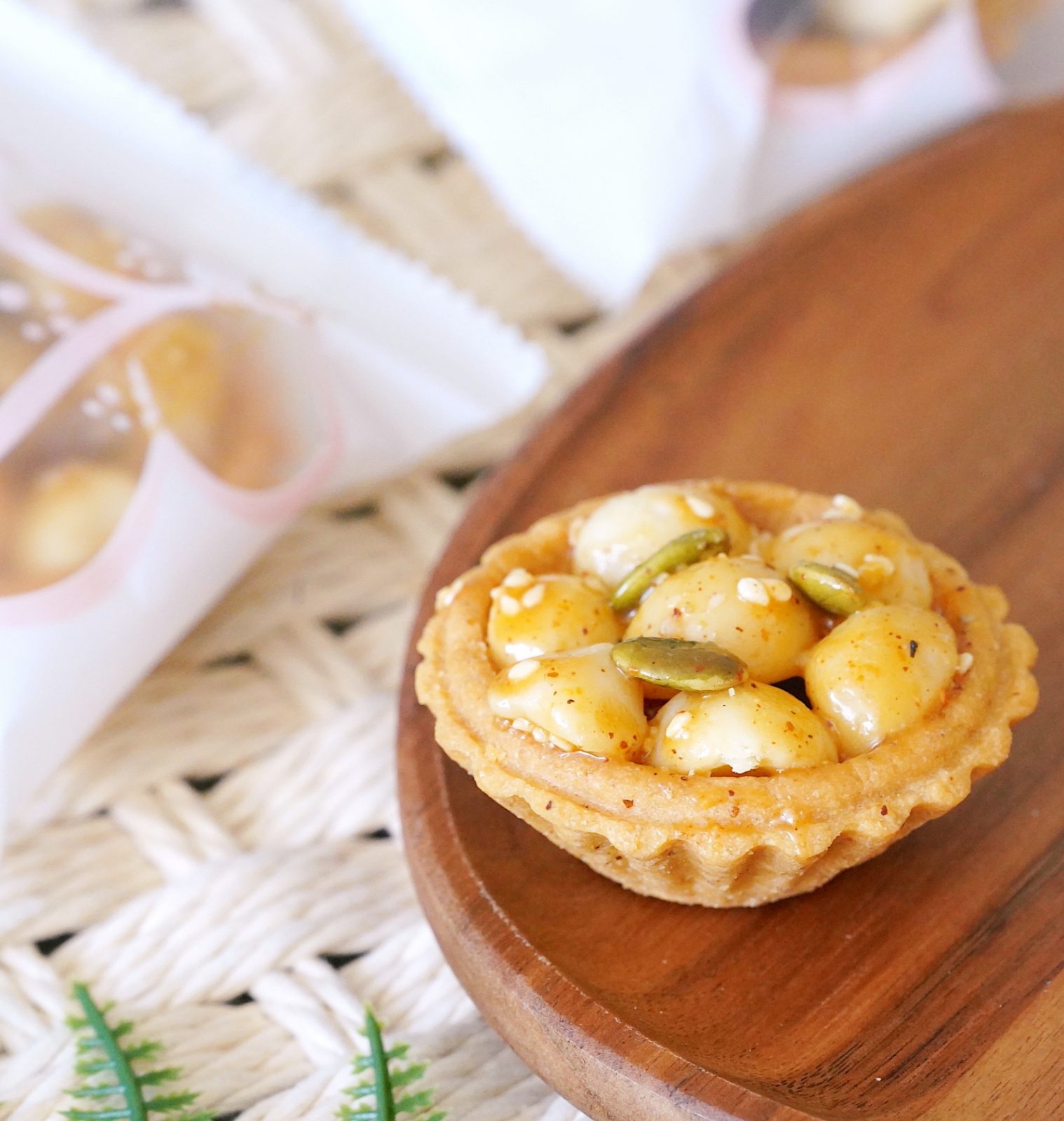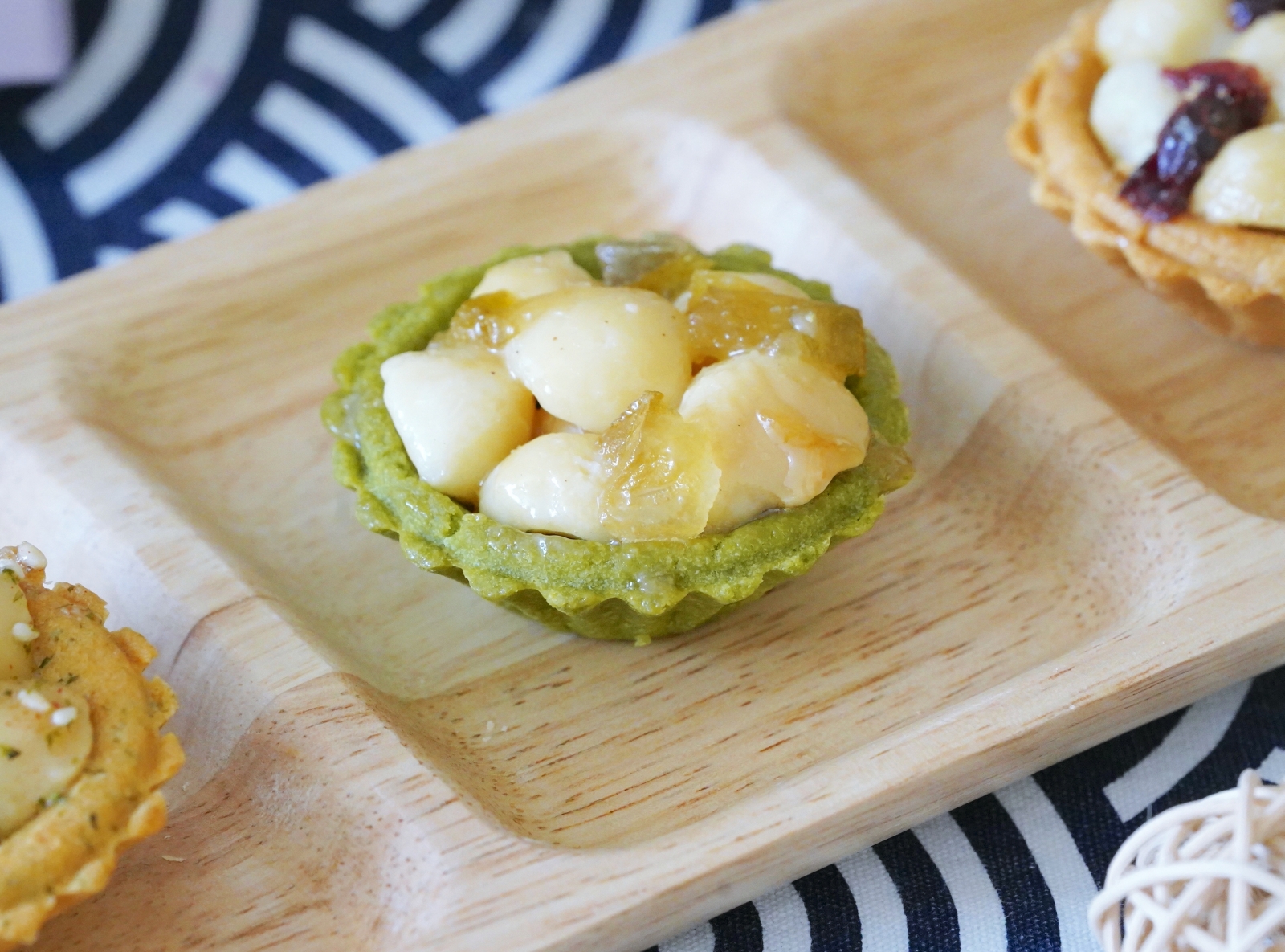 柚香豆塔吃得到柚子皮,柚子皮經過處理已經沒有苦澀味,但是營養不流失。柚子皮黃又亮,在飽滿的夏威夷豆注入一縷酸甜,讓吃到的每一口都感受到香氣盈滿。
