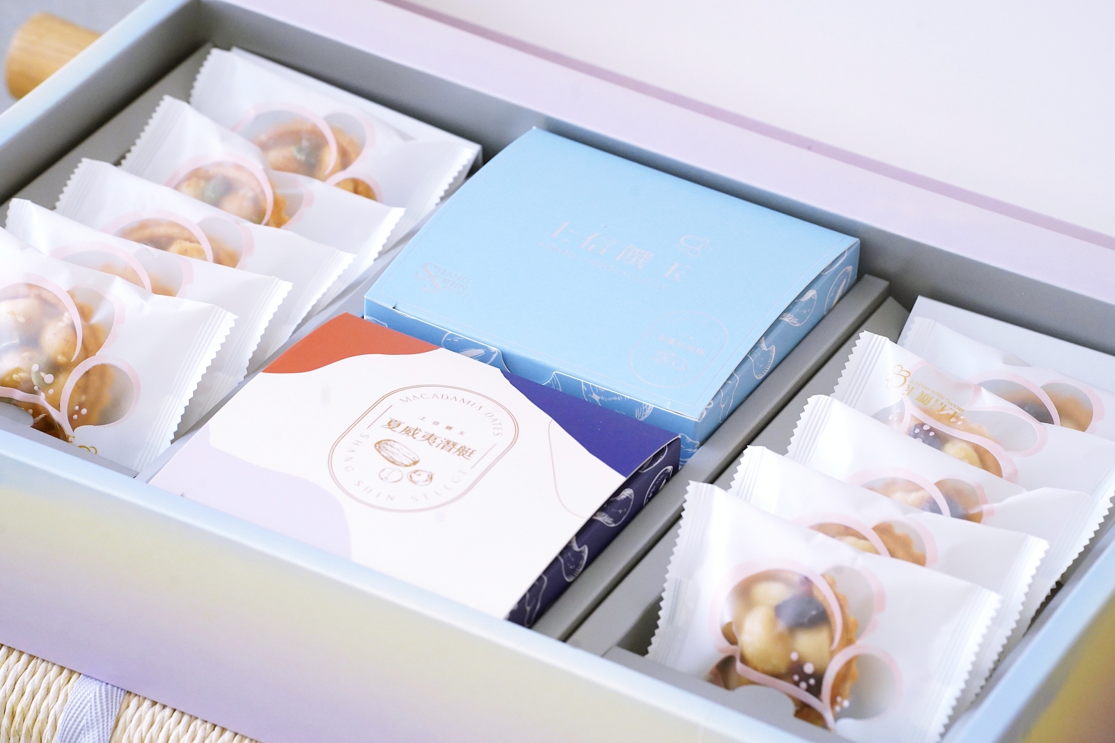 ▼內容物:夏威夷豆塔 5 入、夏威夷潛艇(S) 200g、南棗核桃糕(S) 260g