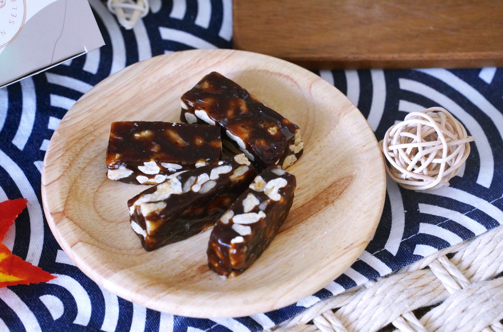 堅果棒的另一種口味,焦糖醬與麥芽糖凝固糖體中加入不少核桃、杏仁,香甜不燥熱,也能感受兩種堅果豐富油脂。