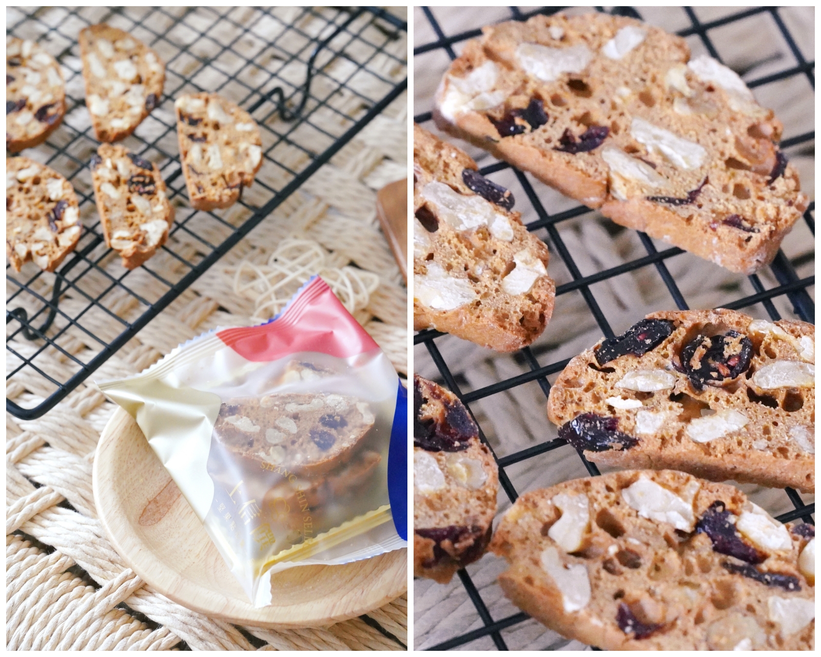 ▼脆餅從定型到切片,整體呈現乾燥、鬆脆。但是加入帶點潤度的蔓越莓,讓不愛太乾餅乾的人都能接受,蔓越莓被萊姆酒浸泡,芳香之氣襲人,由於還有加入黑糖,因此跟原味脆餅一樣,咀嚼時也能吃出黑糖的香氣滿盈。