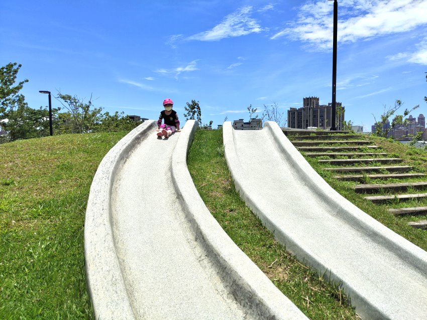 ▼公園邊邊竟然還有兩條磨石子溜滑梯,真是太開心啦~~