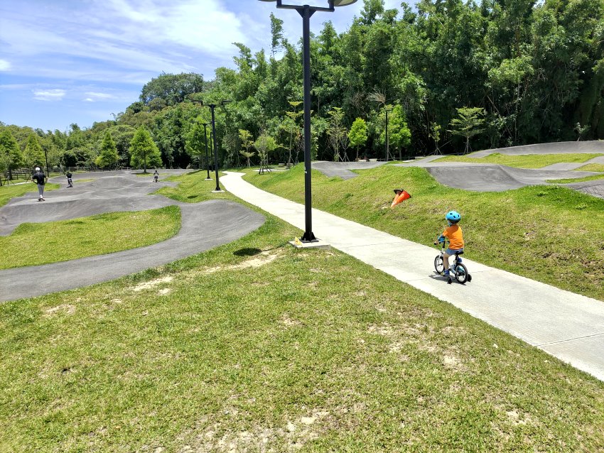 ▼因為佔地寬敞的關係,很適合帶小孩來放電!!小口弟光是騎在步道上也可以騎個大半天~~等小倆口都玩過癮了他還沒騎完一圈(笑)!