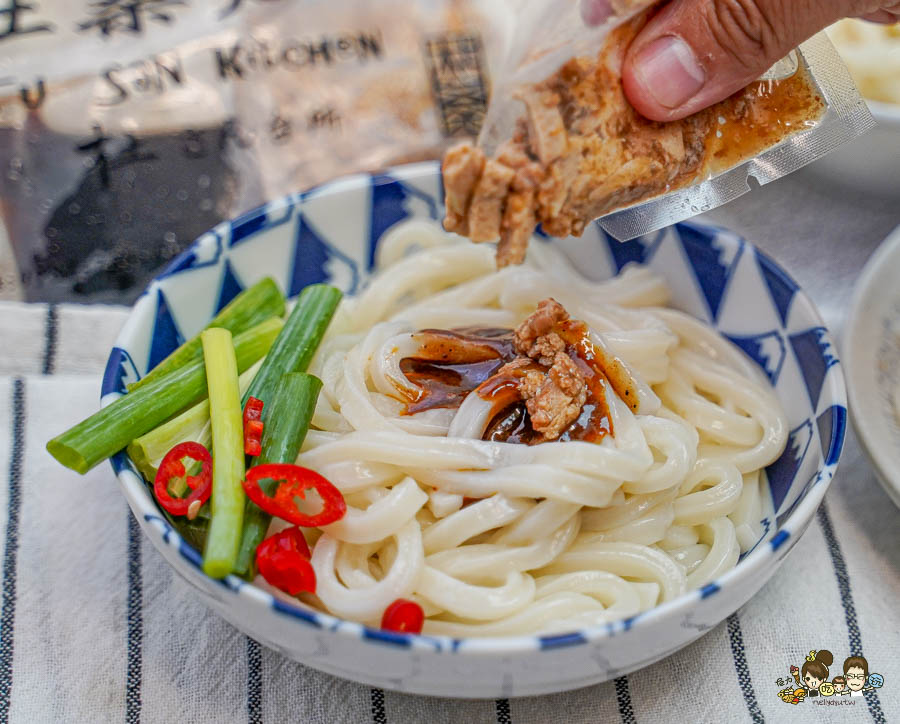 不用五分鐘就可以快速上桌,彈牙好吃烏龍麵食上桌