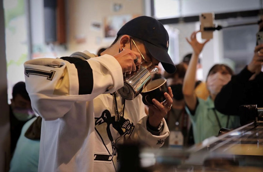 穿著美式嘻哈服飾,專注手沖咖啡的職人咖啡館