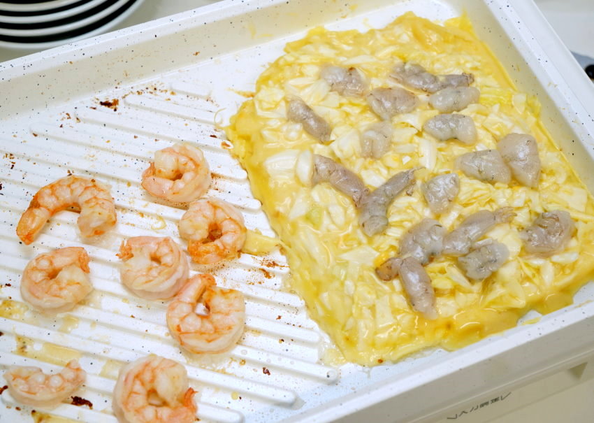 不知道有沒有人跟大口一樣,突然好想來一口邪惡的日式大阪燒~~在家自己做也很可以!這次大口要分享的大阪燒做法也不難,我們是用Giaretti 珈樂堤多功能陶瓷不挑鍋料理盤製作,麵糊跟豬肉、海鮮配料可以同時一起下去香煎,完全不用換鍋具,方便又省事!如果沒有的話也可以用一般平底鍋來製作~~基本上就是低筋麵粉、水、雞蛋、高麗菜等打成麵糊後,再搭配想吃的海鮮、肉片或起司即可,淋上日式大阪燒醬、日式沙拉醬、柴魚片就很對味啦!文中有海鮮大阪燒、豬肉大阪燒兩種做法,加上乳酪絲更邪惡,有興趣的朋友趕快跟著看下去吧~~