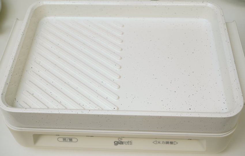 ▼像是Giaretti 珈樂堤多功能陶瓷不挑鍋料理盤的波紋平盤設計就很很方便,左邊可以煎肉片、海鮮,右邊直接可以煎大阪燒!