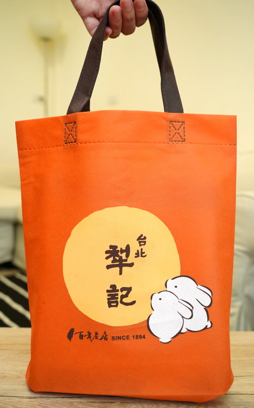 ▼提袋為環保袋材質,橘黃配色相當亮眼,搭配小兔子很有中秋節的氣氛,一般節日也可通用!
