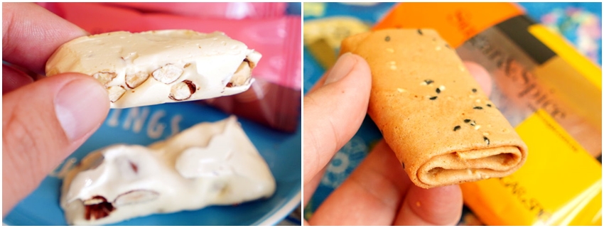 ▼打開一看,左側是盒裝的法式牛軋糖,右側則是五入原味薄捲餅,一次可以吃到兩種不同商品!