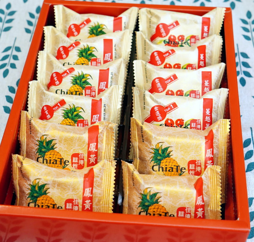 ▼裡頭一共有三種口味的水果酥,包括原味鳳梨酥、鳳黃酥、蔓越莓鳳梨酥,口味多元又有變化!