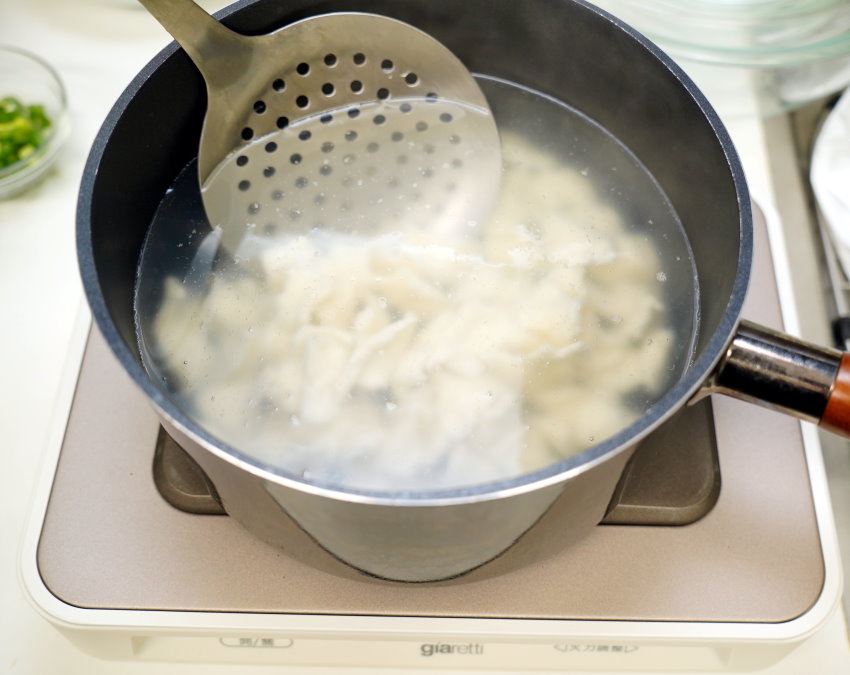 ▼等到麵疙瘩浮起來就可以準備撈起備用囉!